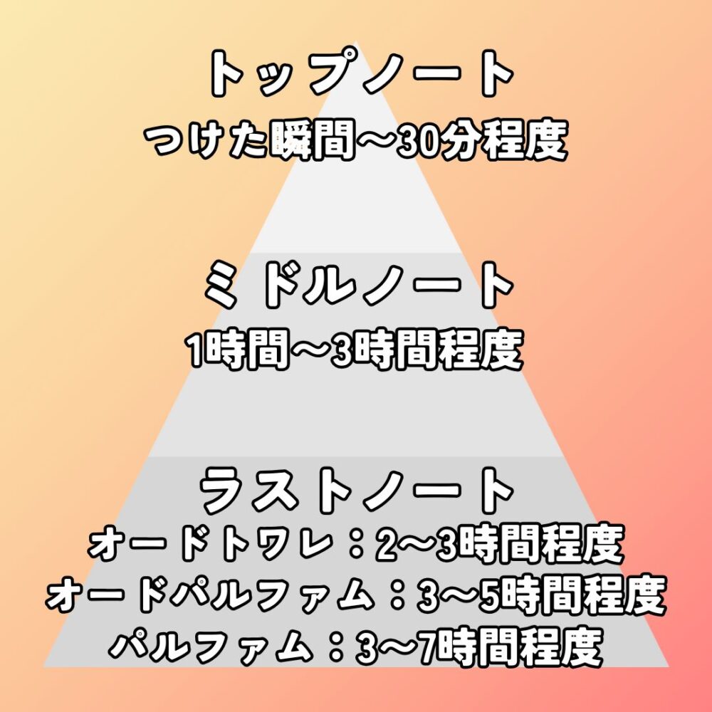 - ミドルノート:1時間〜2時間程度